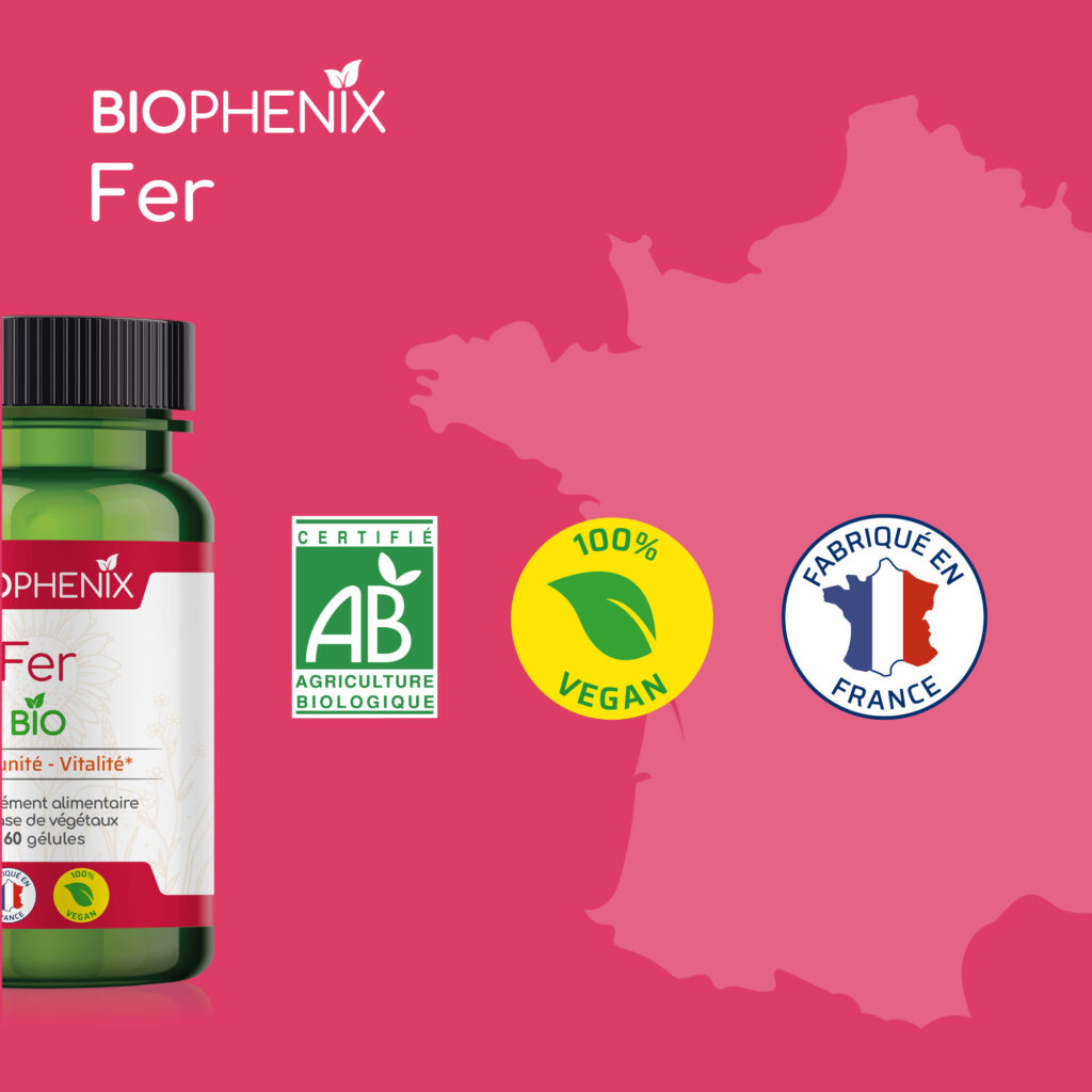 Fer Biophénix, 100% naturel et biologique, contient tous les éléments nécessaires à une assimilation optimale sans effets indésirables.