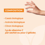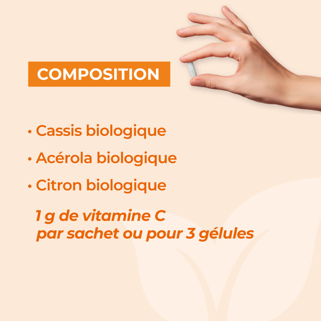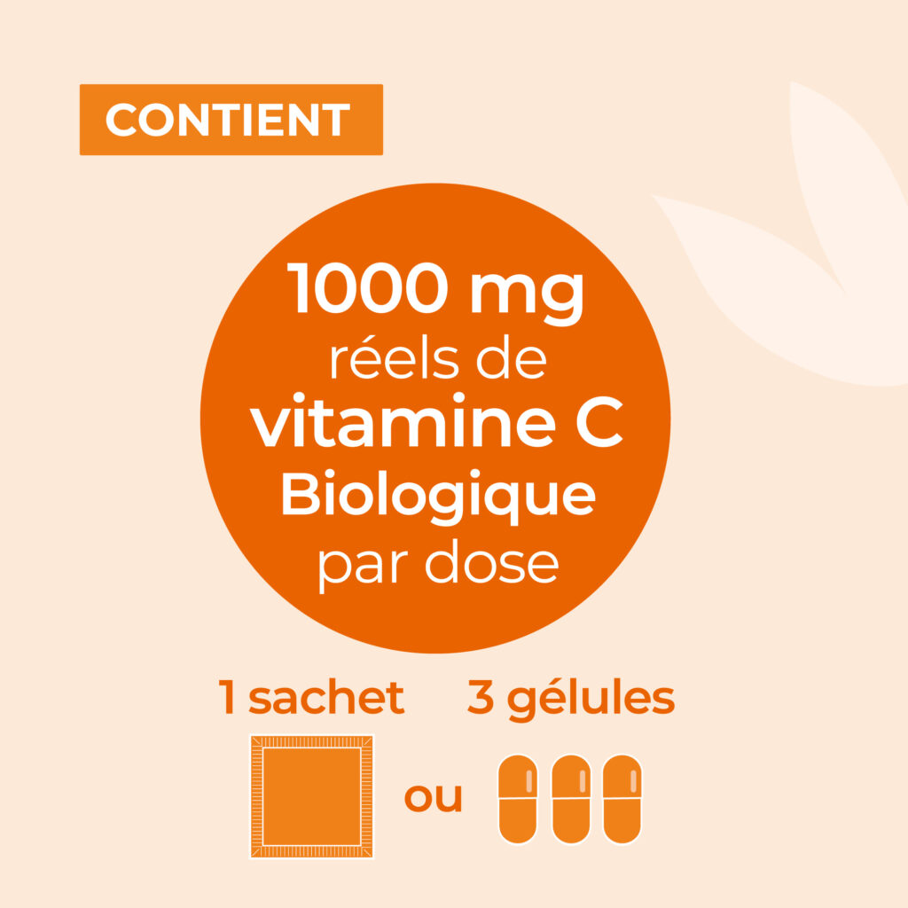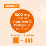 - Vitamine C bio à 100 %. 1 g par sachet ou 330 mg pour 1 gélule.